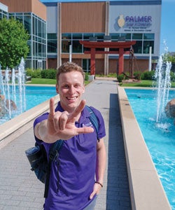 In his first trimesters as a student, Jake was surprised by the overwhelming support of fellow students and Palmer faculty. By working with Jake to understand his needs, the College was able to provide him with real-time captioning during his classes. This accommodation not only allowed Jake to take notes but also enabled him to catch everything his professors said and fully participate in the curriculum. He has also networked with his peers to bring more awareness to the deaf community and has joined many extracurriculars on campus.