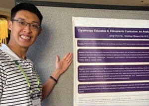 Song Chen Xu focused his research closer to home, analyzing cryotherapy education within the Palmer Florida curriculum. As a student nearing graduation, Xu viewed research as both a learning experience and a way to strengthen evidence-based care across the profession.